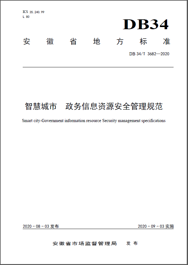 基于此案例,公司申报并通过了安徽省地方标准《DB34T 3682-2020 智慧城市 政务信息资源安全规范》,此标准填补了政务领域数据安全规范标准的空白,为安徽省电子政务信息资源交换共享和开放应用过程中的安全保障提供理论指导。