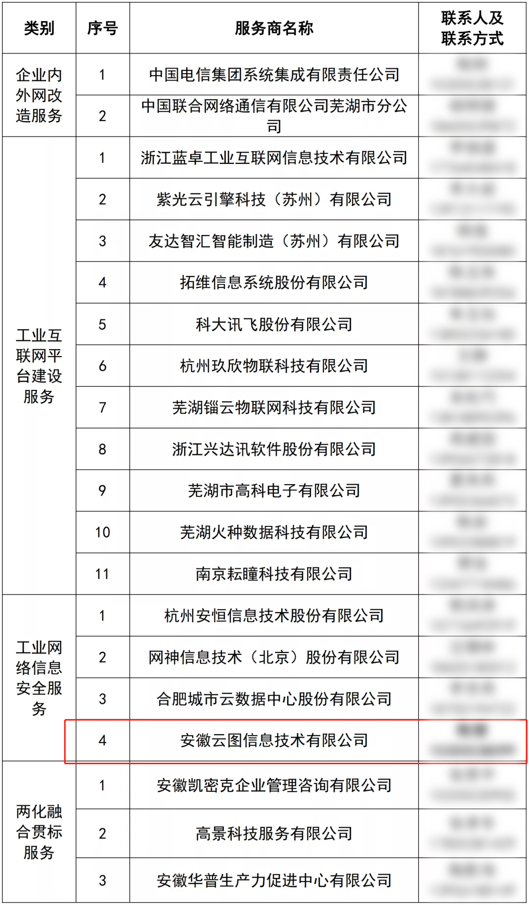 近日,芜湖市公布了工业互联网服务商第一批资源目录,安徽熊猫体育信息技术有限公司榜上有名,入选专业服务商!